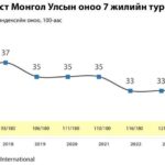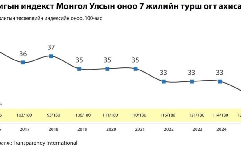 Transparency International байгууллагаас жил бүр гаргадаг Авлигын төсөөллийн индексийн 2025 оны тайланд Монгол Улсын индексийн оноо өмнөх оноосоо 2 нэгжээр буурч, 31 болсныг Транспэрэнси...