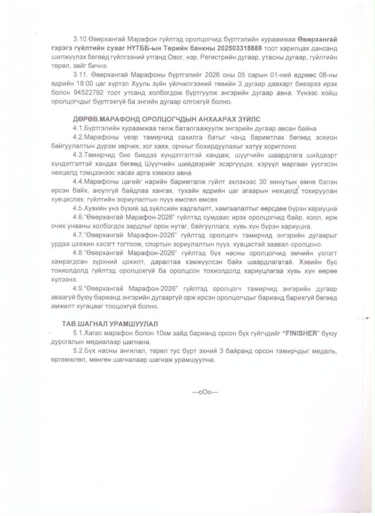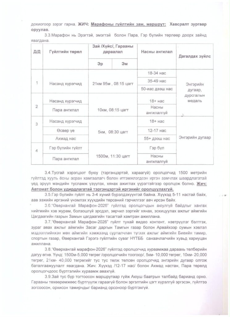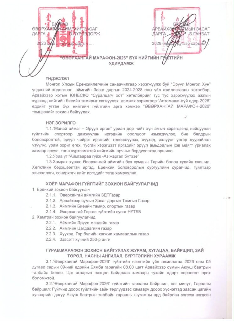 “Өвөрхангай марафон-2026” бүх нийтийн гүйлтийн удирдамжийг танилцуулж байна.
