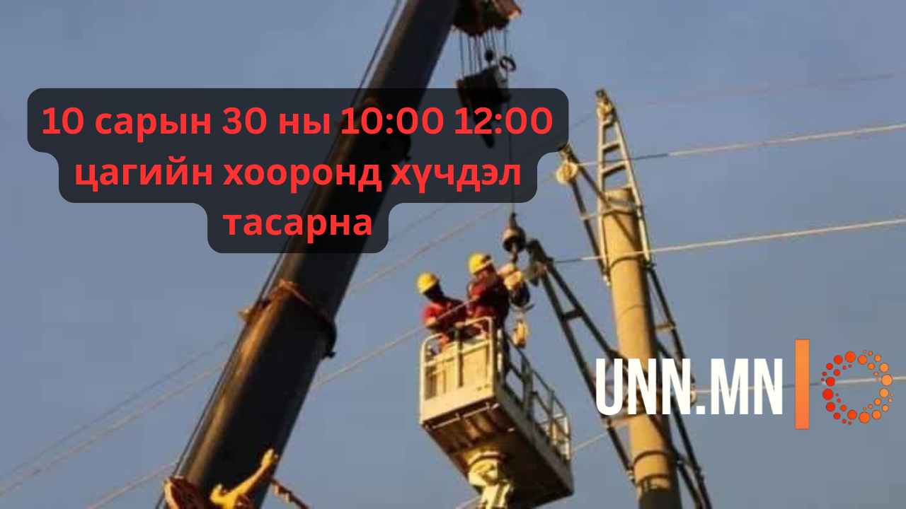 10 сарын 30 ны 10:00 12:00 цагийн хооронд хүчдэл тасарна