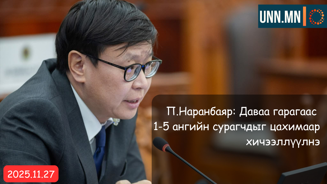 П.Наранбаяр: Ирэх долоо хоногт нийслэлийн зургаан дүүргийн 1-5 дугаар ангийн хичээл цахимд шилжинэ