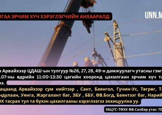 ЦАХИЛГАА ЭРЧИМ ХҮЧ ХЭРЭГЛЭГЧИЙН АНХААРАЛД
