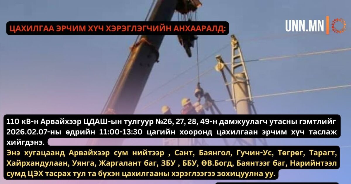 ЦАХИЛГАА ЭРЧИМ ХҮЧ ХЭРЭГЛЭГЧИЙН АНХААРАЛД