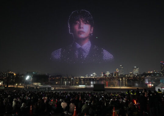 BTS хамтлагийн эргэн ирэлтэд зориулсан дроны гэрлийн шоугаар хамтлагийн гишүүн Jung Kook-ийн дүрийг урласан нь – Сөүл, БНСУ Lee Jin-man/AP