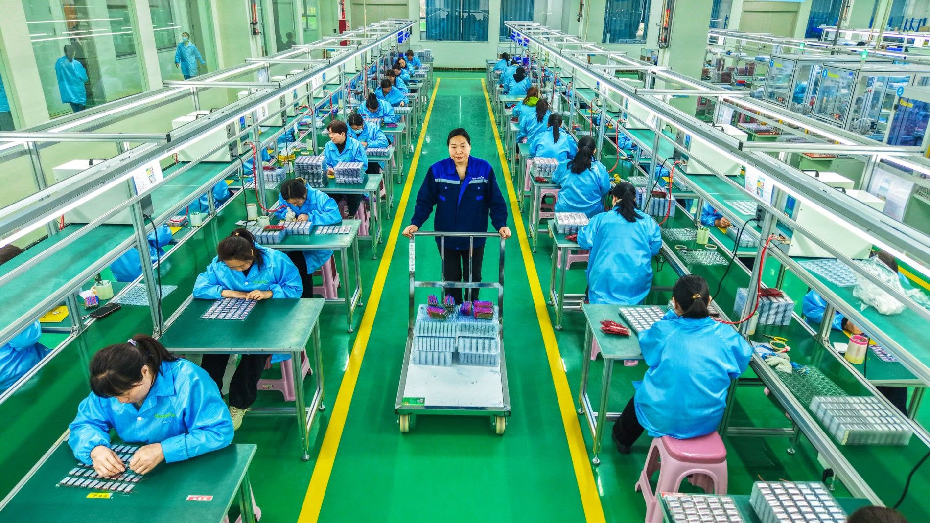 Fenglong Electric компанийн цахилгаан барааны үйлдвэрлэлийн шугам дахь ажилчид – Наньянг, БНХАУ